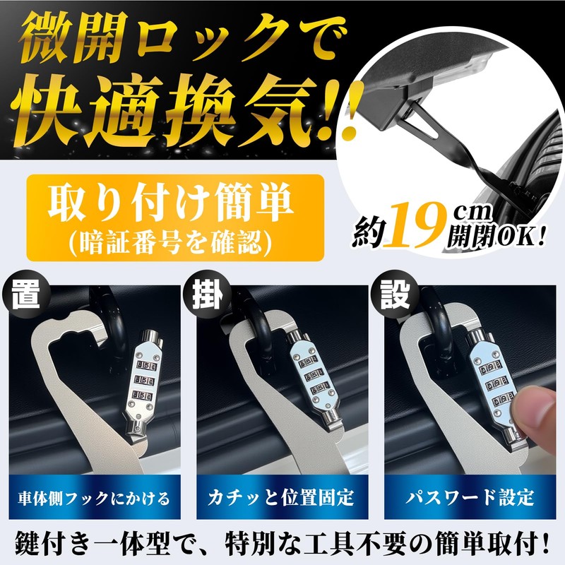 - (Compatible with a wide range of vehicles) Smooth opening and closing for outstanding durability. Compatible with over 95% of domestic vehicles from light cars to SUVs (*Not compatible with electric doors). The door can be opened up to approximately 7.5 inches (19 cm) to ensure excellent ventilation. Ready to install on your rear gate/back door with no special modification required