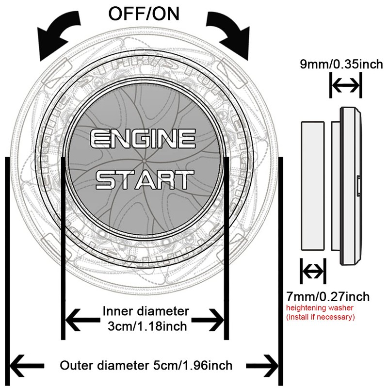 - Push start button spin cover. Suitable for 90% one-key start cars and also suitable for some motorcycles (the button can be installed smaller than 1.18 inches). Before ordering, please make sure the size of the start-stop button.