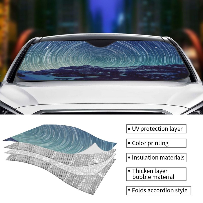 Car Front Windshield Sunshade, Fun Foldable Car Front Window Sunshade for Car SUV Truck Cooling Blocking UV Rays and Keeping The Interior Cooler (Starry Sky)