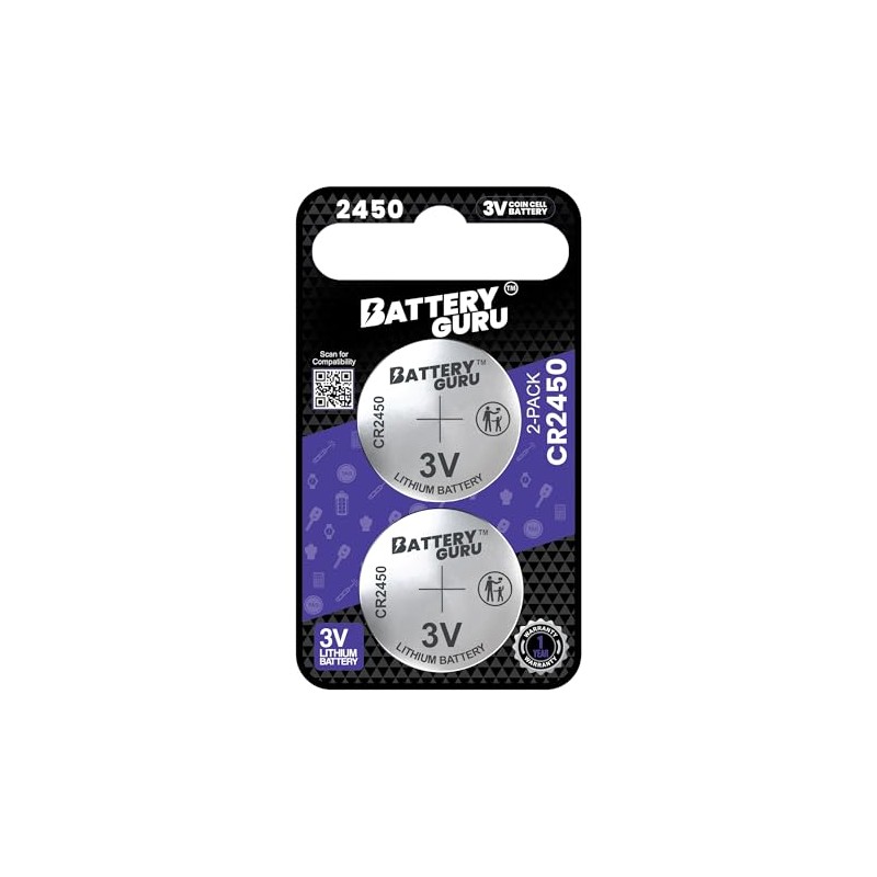 - Includes two (2) BatteryGuru CR2450 3V car key batteries.