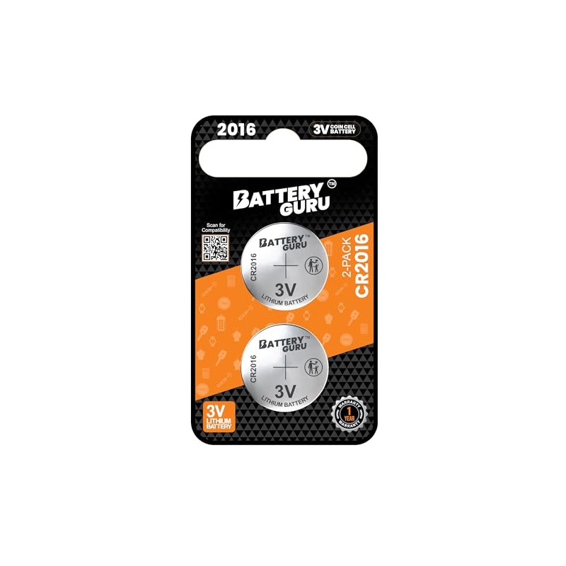 - Includes two (2) BatteryGuru CR2016 3V car key batteries.