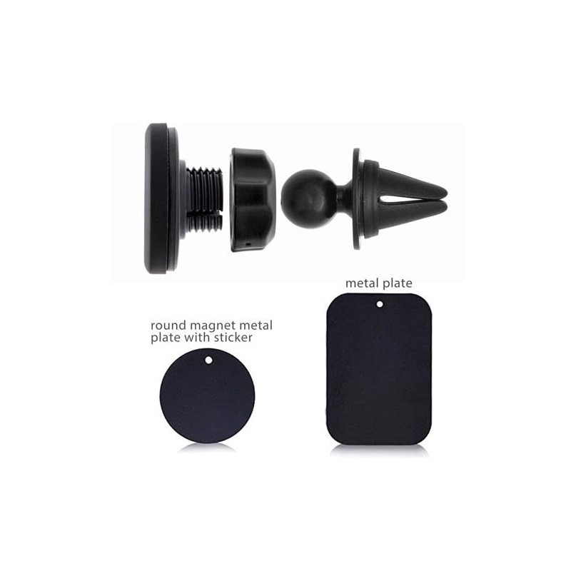 World Class Design durable rubberized covered magnetic universal car mount; equipped with magnetic plates to secure your device. Secures your device to car's air vent for full touch screen access. Metallic plate enables perfect mounting on your air vent of your choice. Customize your viewing experience while you drive safely on the road today! Features: Easy to install metallic plate to your phone or behind your phone case. Air Vent magnetic car mount is easily placed. Easily place your phone at any angle for preferred angel of view. Benefits: Turn your car's air vent into on board touch screen navigation. Safely utilize all your Bluetooth and GPS functions with Stand Car Mount. Prevent breaking the law and from having to hold your mobile phone while driving. Avoid car accidents, traffic tickets, violations, and prevent getting lost. Keep the roads safe and become a more responsible driver with your cradle Smartphone GPS holder. Stream your media, music, and podcasts, with your cars' on board Bluetooth functions. Plant your GPS location to arrive at your travel destinations safe and sound! Get the best of all your apps such Waze, Google Maps, iTunes, Pandora, or Spotify. Never struggle with your device again while driving. Simply place your car mount on your dashboard and begin a smoother safer travel experience! Comes in Bulk Packaging (Non-Retail Package).