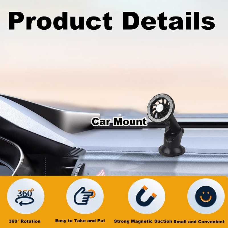 - Mount Your Way - Reusable suction cup lets you securely mount on your dashboard or windshield and reposition anytime; Compared to traditional mechanical car mount, it is more convenient, compact, and frees up your hands