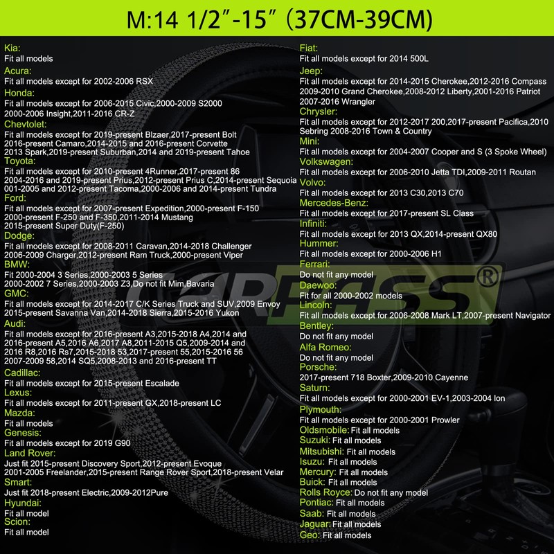 - EASY TO INSTALL AND USE: fits all standard steering wheels 14.5" to 15.5" and can be put on effortlessly in seconds. Get the compliments from your family and friends.