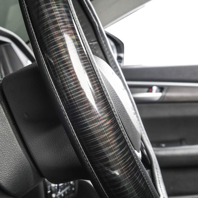 - PREMIUM RADIO WEAVE DESIGN, COLOR -CHANGE WITH PU LEATHER ON THE SURFACE OF STEERING WHEEL COVER: Radio weaving design add the fashion sense, Soft PU leather Feel Very comfortable when driving. Protect your hands from burning hot steering wheels in summer and ice cold ones in winter.