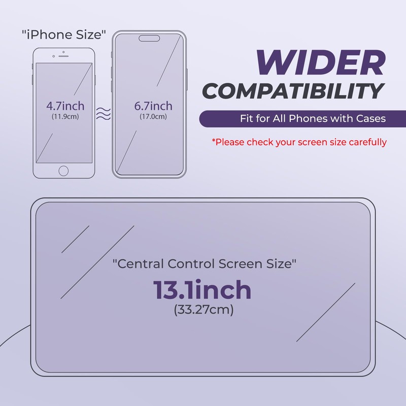 - No Obstruction of Ventilation and View: The cell phone holder is fixed on the bezel of the center control screen through the clips, not blocking the air vents, not obstructing the line of sight (Complimentary 2 pieces of 3M reinforced adhesive spare)