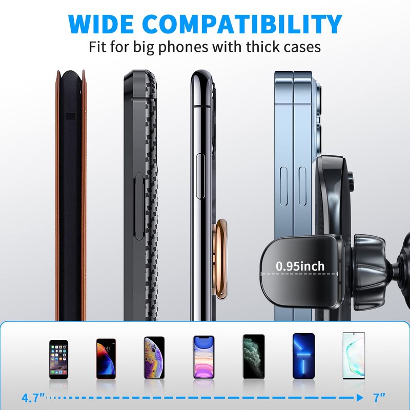 - Versatile Design: This car phone mount holder is designed to securely grip and hold most smartphones and mobile devices.