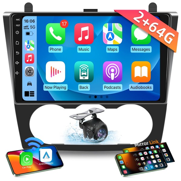 Car Radio Stereo for Nissan Altima 2008-2012: Upgrade 2+64GB 5G-WIFI 9" 1280*800 Touch Screen Head Unit - Wireless Carplay Android Auto Bluetooth GPS RDS FM Mirror Link Backup Camera SWC (Manual AC)