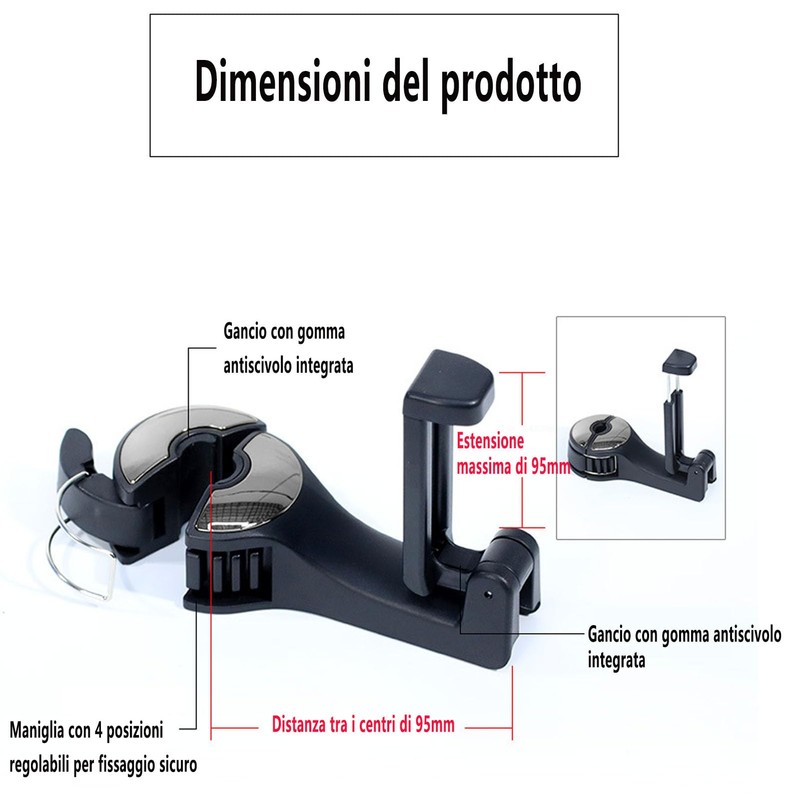 - High Quality Material The car seat hook is made of high quality ABS, more durable than the plastic and steel wire versions, and fits perfectly into the interior of the car. The silicone rubber will not scratch the headrest struts.
