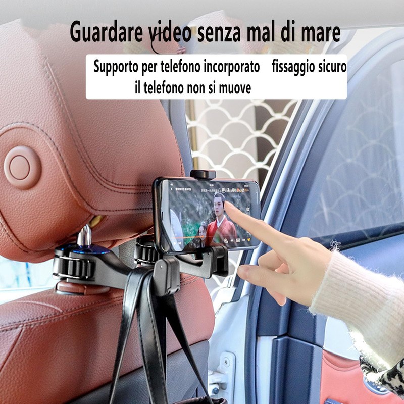 - SAVE SPACE Car headrest hook, prevent suitcases from falling off during turns. Organize clutter in the back seat and free up your seat, floor and legroom. When not in use, the hook can be hidden to ensure safety and maintain the original appearance from inside and outside.