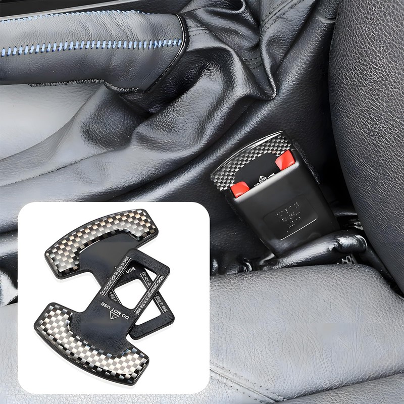 A set of 2 safety seatbelt clip slot plugs, suitable for all car models, ensuring a more comfortable and safe driving experience.