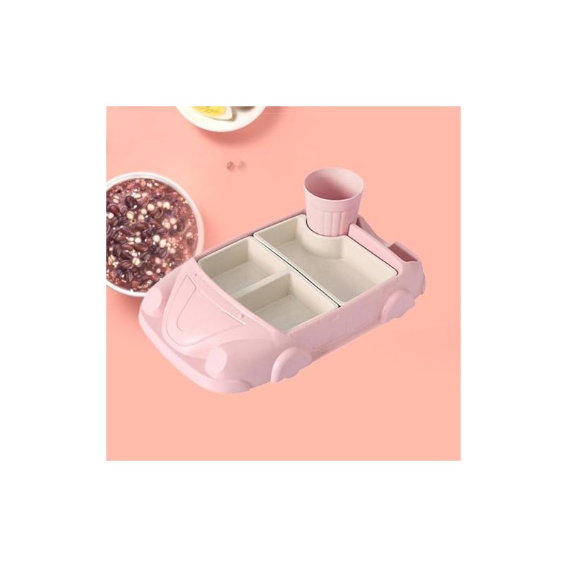 Car-shaped Tray Tableware ,Car Shaped Plate with Water Cup Sections Dish for Babies, Tray Tableware Food re-usable (pink)