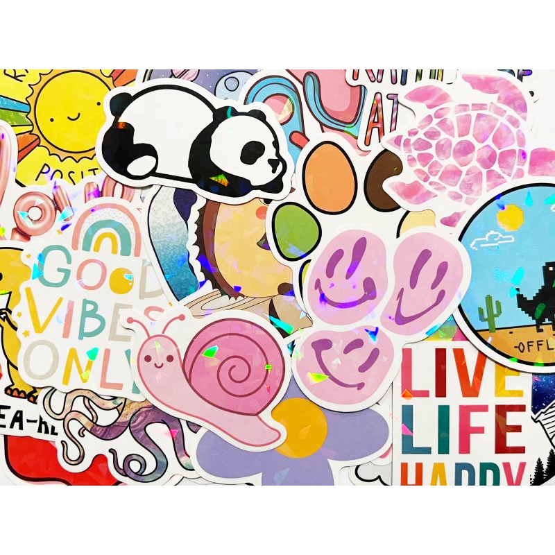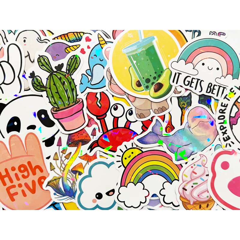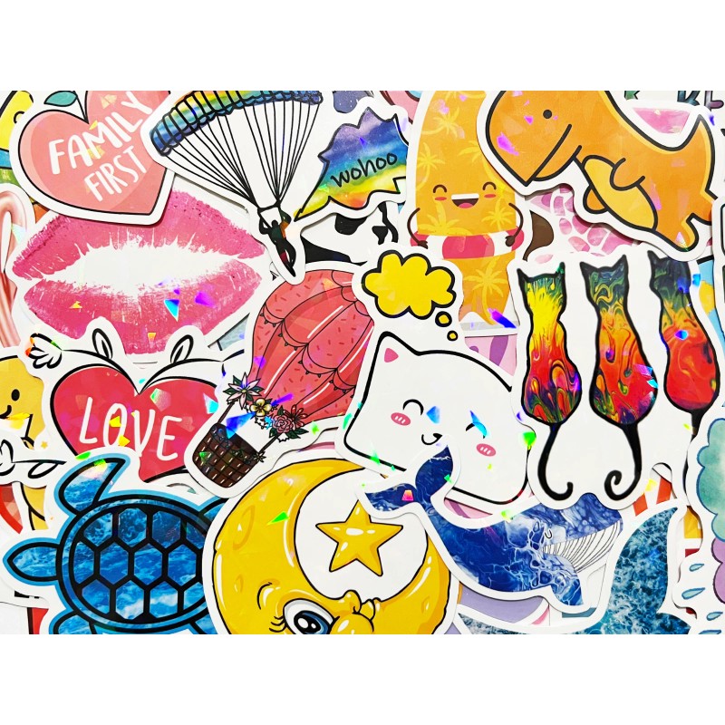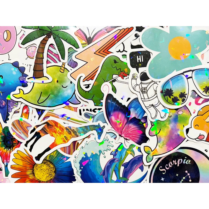 Car Stickers 100 Colorful Holographic & Reflective Sticker Pack Shiny Light