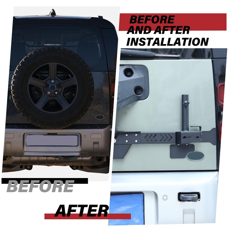 - 【Easy Installation】Easy Bolt-on Installation, Installation position does not affect the placement of spare tires. Operate the tailgate door with full dexterity, NO need to un-install every time you want to open the tailgate