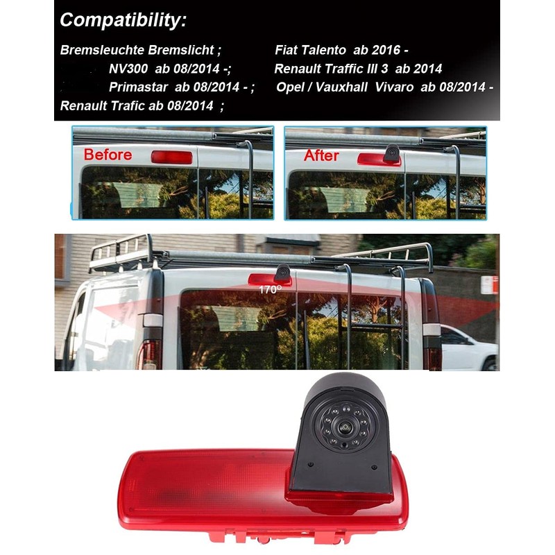 - ✔ Kalakus Brake Light Camera Replacement for Fiat Talento/Nissan/Traffic/Nissan Primastar/Opel/Vauchall Vivaro/Trafic