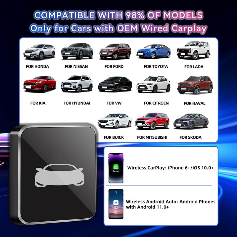 - Wireless CarPlay Adapter: Auto-Connect, Hands-Free Control & Seamless Switching Instantly link to your Phone(IOS or Android OS), when the car starts—no cables, no delays. Retain steering wheel controls, Voice Control, and touchscreen navigation. Perfect for safe, clutter-free drives.