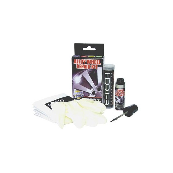 - Alloy Wheel Repair Kit Includes: E-Tech alloy wheel putty, Silver alloy wheel metallic touch-up paint, Pair of gloves & Detailed application instructions