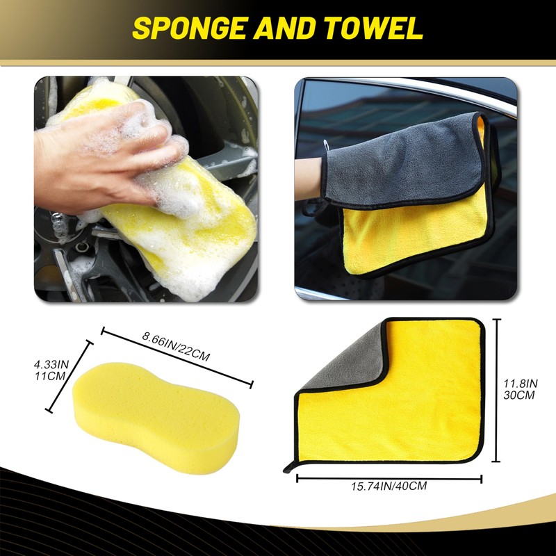 - 【Better Car Cleaning Kit】This is a good car cleaning tool kit for anyone car lover, in addition to the foam gun combination, it also gave away car washing sponge & absorbent towel,making it more convenient for you to wash the car.