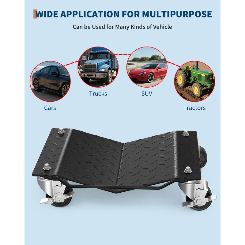 - 【Versatile Usage】 - Beyond serving automotive needs, our wheel dollies are valuable for shops, garages, showrooms, and restoration projects involving a wide array of vehicles and equipment, such as cars, trucks, trailers, tractors, ATVs, motorcycles, lawnmowers, and furniture.