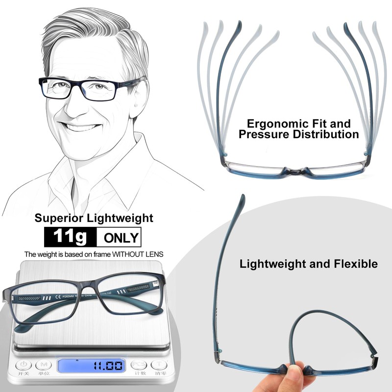 • [SUPERIOR LIGHTWEIGHT & STURDY FRAME ]: The frame is made of SWISS TECHNOLOGY Grilamid TR90. Each frame is ONLY 11g weight(without lens). Extremely durable and not easy to deform or break, lightweight and comfortable. The one-piece nosepad is thin and comfortable, easing the pressure on your nose after using for a long time