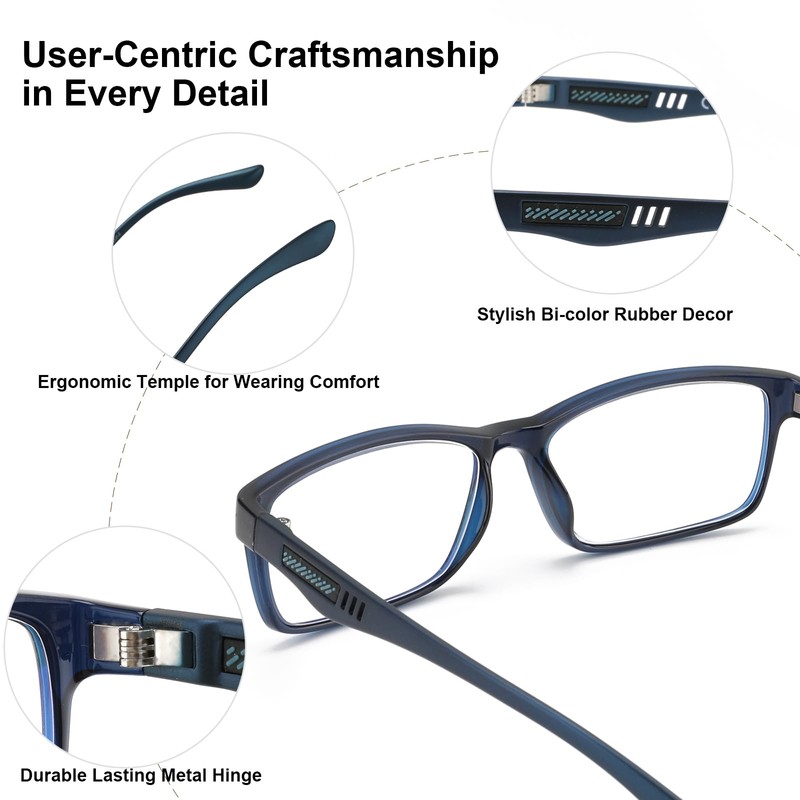 • [STYLISH & MODERN DESIGN]: Made with strong, flexible TR90 material, these frames are lightweight and built to last. The bold design features matte-finish temples that look like metal, paired with two-tone rubber accents for a modern touch. The wraparound temple ends keep the glasses securely in place. The slightly curved legs fit naturally, avoiding slippage during work, sports, or daily wear