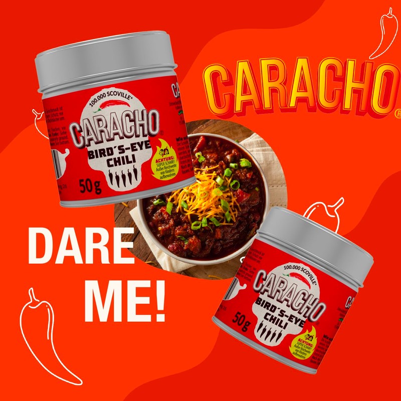 • Caracho: we at CARACHO are masters of sharpness. With a lot of love and a lot of sharp tests, we have put together the tastiest and hottest chilies from all over the world to offer you a culinary experience at the next sharpening level! Convince yourself! it lots of love and after several button tests, here are our first favourites: the Chipotle chili flakes!