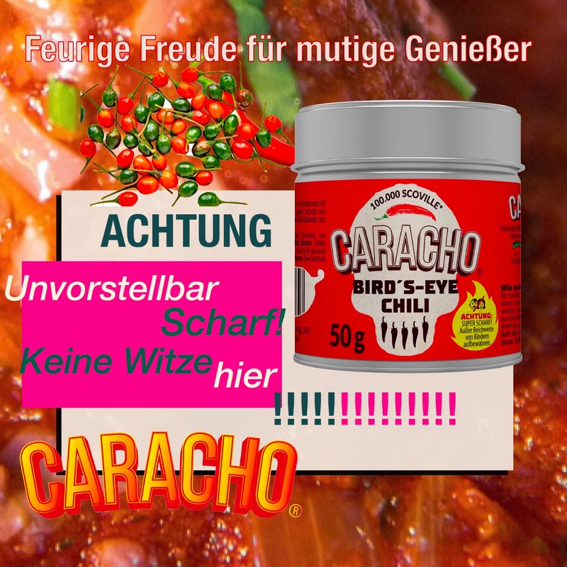 • Extreme sharpness: with 100,000-20,0000 Scoville, the Birds-Eye chilli flakes from CARACHO are not suitable for beginners and really heat up you! No sweet touch, pure sharpness and real burning. Even hard-boiled sharpness veterans are boiled soft