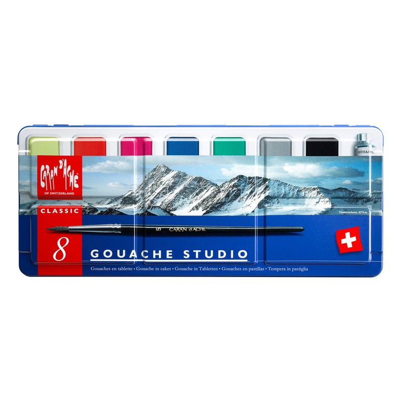 CARAN d'ACHE - GOUACHE STUDIO - Palette with 7 Colour Tablets and Accessories