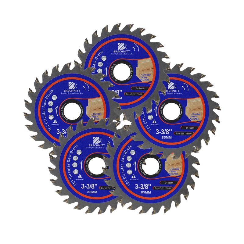 Carbide Tipped Teeth Compact Circular Saw Blade 24T 3 3/8"- BRSCHNITT 5pcs Wood Cutting Saw Blade for General Purpose Cutting & Trimming Wood, Plastic and Composite Materials Arbor:3/5"-3/8"