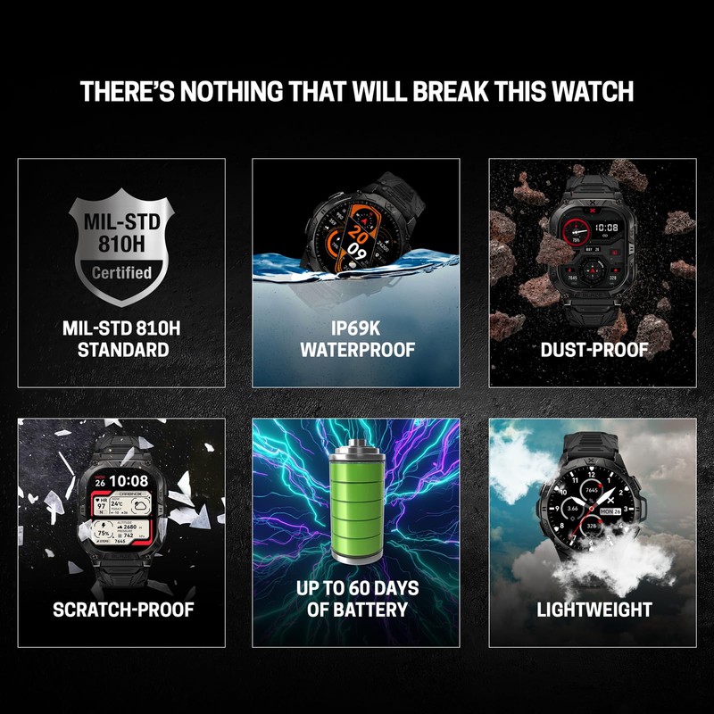 - ⌚ BUILT WITH A RUGGED ZINC ALLOY BODY AND GORILLA GLASS SCREEN: Is crafted for the toughest environments, offering unparalleled durability with military-grade scratch and dust-proof technology.