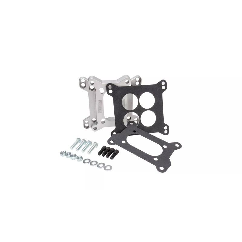• Description: This carburetor adapater kit fits 4-bolt, 4-barrel carburetors to 4-bolt, 2-barrel intake manifolds or 4-bolt, 2-barrel carburetors to 4-bolt, 4-barrel intake manifolds and is 1" thick with an open center, square bore to 2 barrel.