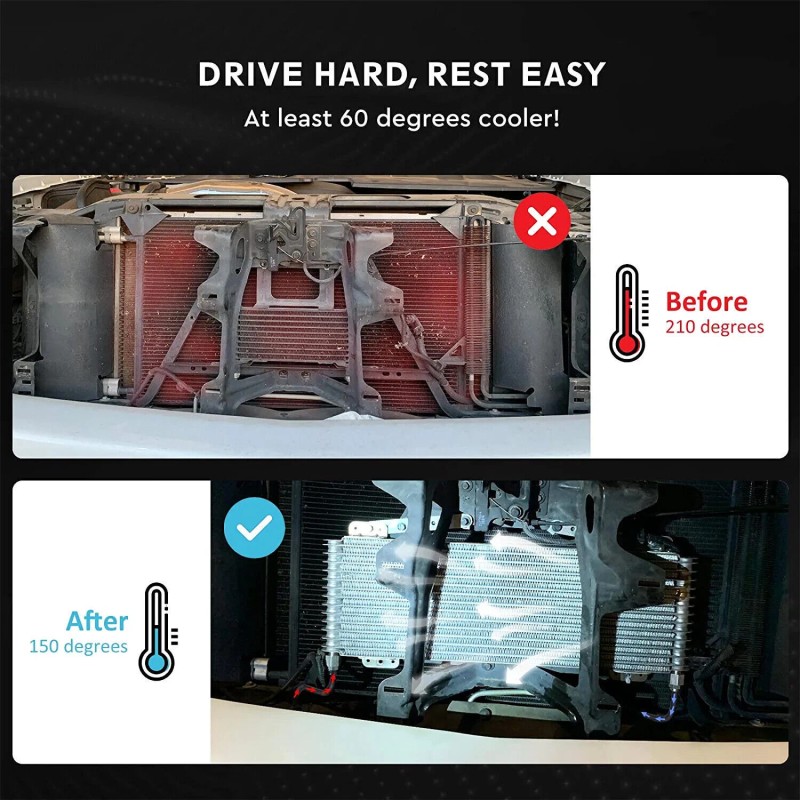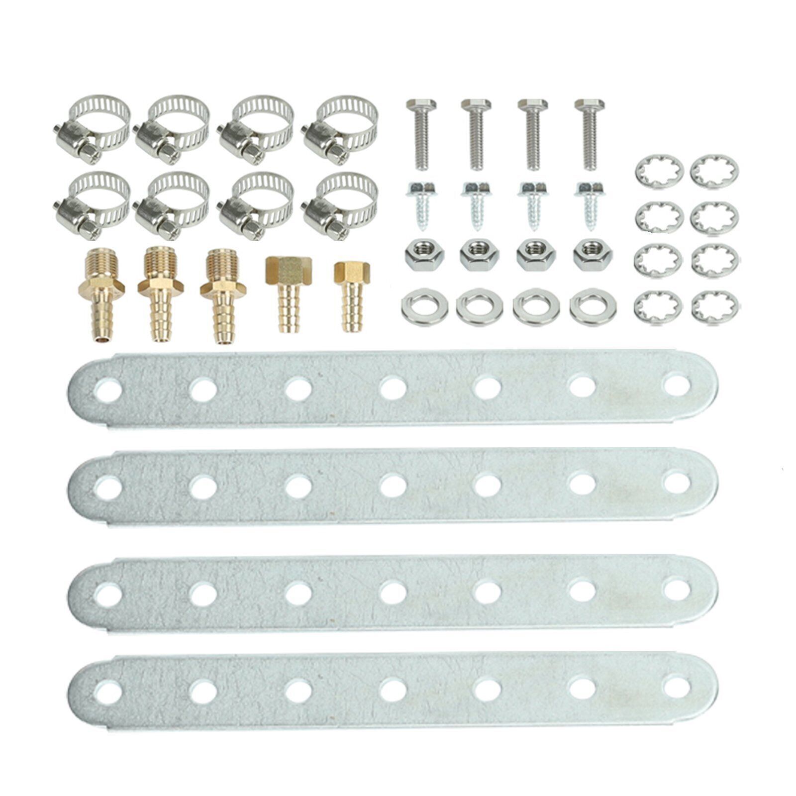 Package Included: 1Set of Mounting hardware – Bolts, nuts, washers, and steel mounting straps Brass fittings, high-quality cooler hose, and hose clamps