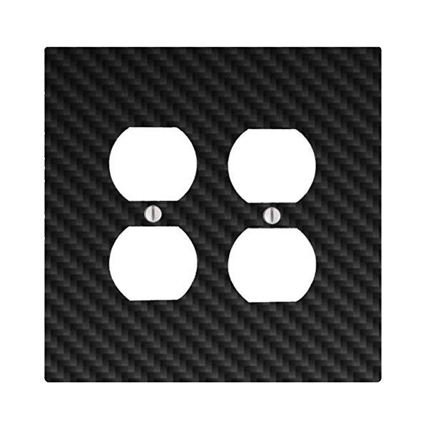 Carbon Fiber Black Grey Pattern Background 2 Duplex Electrical Outlet Wall Plate (4.56 x 4.5in)