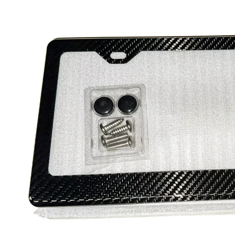 #HighQuality: Highlight the superior craftsmanship and durability of the carbon fiber license plate frame.