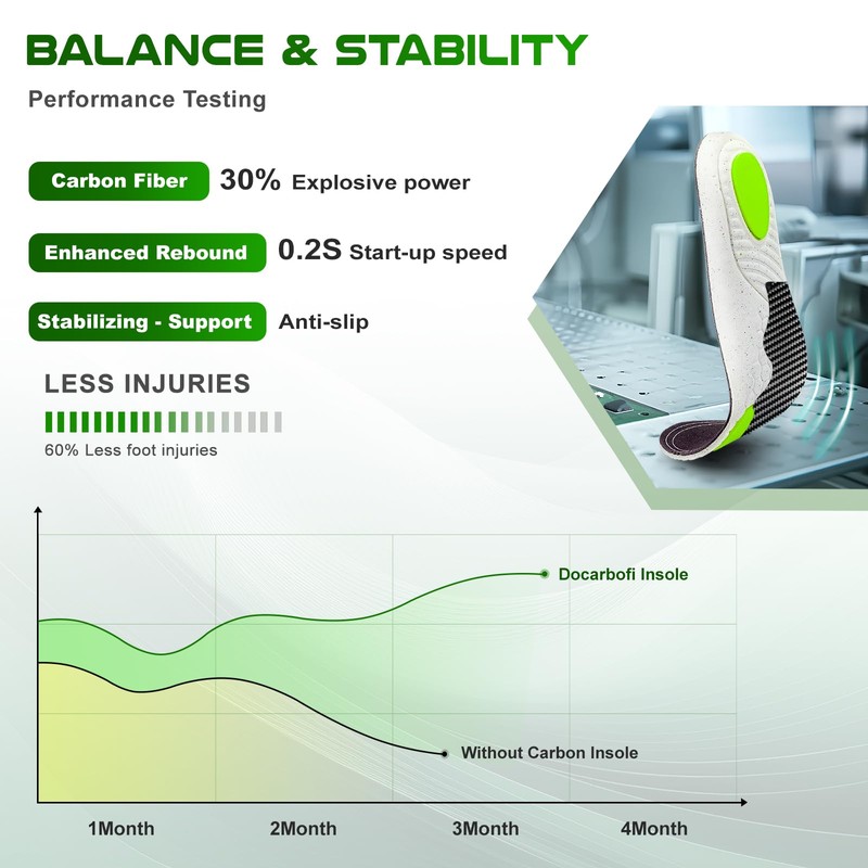 - 【Anti-Torsion & Enhanced Sports Performance】Compared with ordinary insoles, carbon fiber insoles offer superior support, improving stability during quick stops and direction changes. They help prevent foot over-rotation (inward/outward), reducing the risk of ankle sprains, and help athletes perform at their best. Studies show carbon fiber midsoles plate can improve sprint times by 0.2-0.6 seconds, enhancing both performance and injury prevention