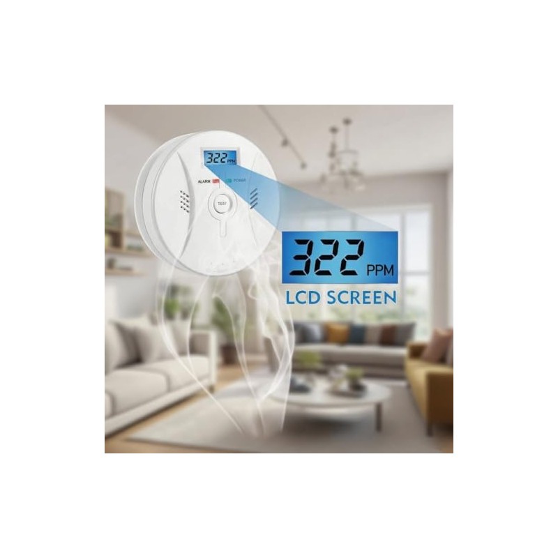 Carbon Monoxide Alarm with LCD Display - 85 dB Sound, Test Button