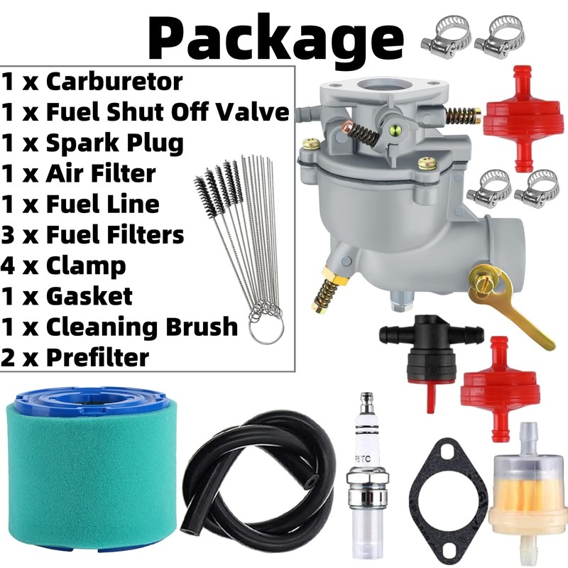 - Package Inclusions: You'll receive a comprehensive set of components: 1 carburetor, 1 fuel shut - off valve, 1 spark plug, 1 air filter, 1 fuel line, 3 fuel filters, 4 clamps, 1 gasket, 1 cleaning brush, and 2 pre - filters. This all - in - one package provides everything you need for installation and maintenance.