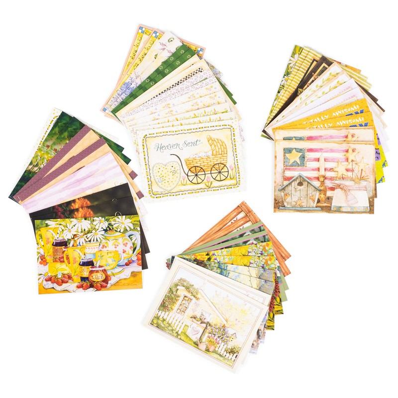 - Cards measure approximately 6.6 x 4.75; Features 2 cards each of 24 designs