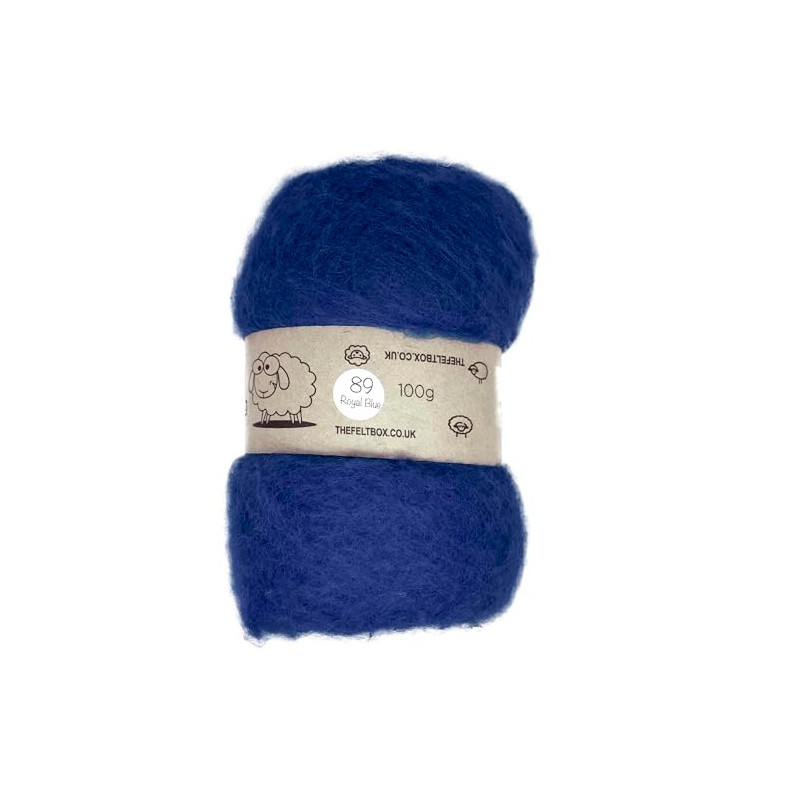 Carded Wool for Felting, Needle Felting Wool, Wool Batt, Craft Wool, Single Shade (Group C), 100 Grams 3.5 Oz (Royal Blue (89))