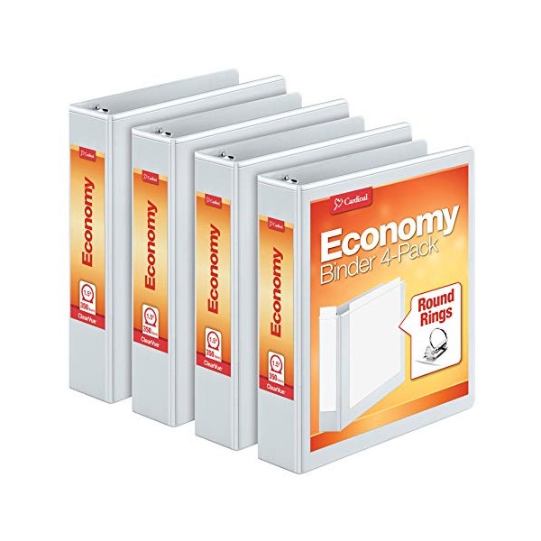 Cardinal 1.5 Inch 3 Ring Binder, Round Ring, White, 4 Pack, Holds 350 Sheets ...