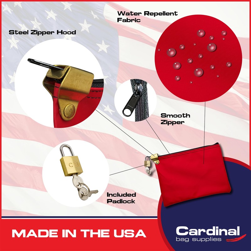 Cardinal bag supplies Cardinal bag supplies Medication Zipper Hood Security Bag with Included Padlock and Keys, 9 x 6 inches (Red)