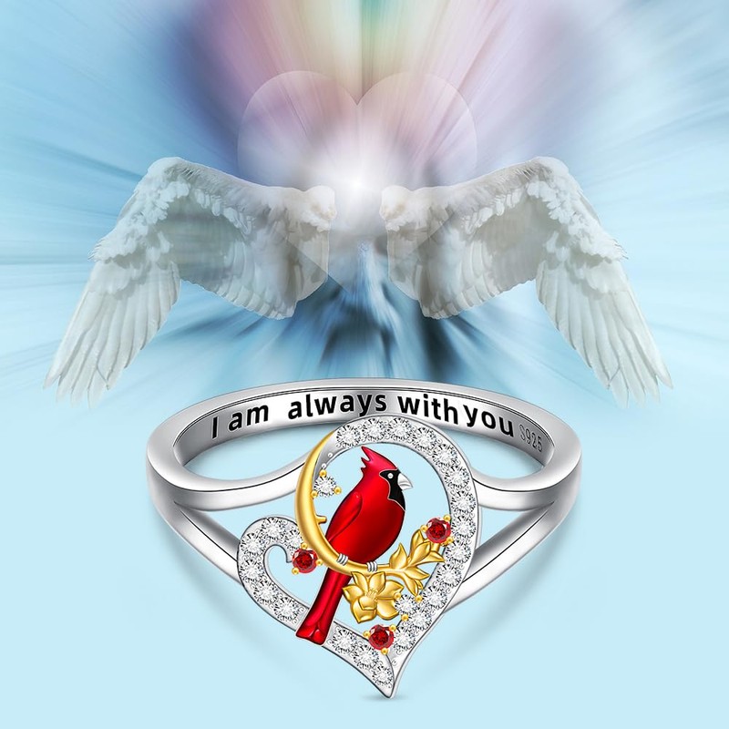 - Always with You: Engraved“I am always with you,” this cardinal ring for women offers comfort and remembrance, symbolizing eternal love and presence