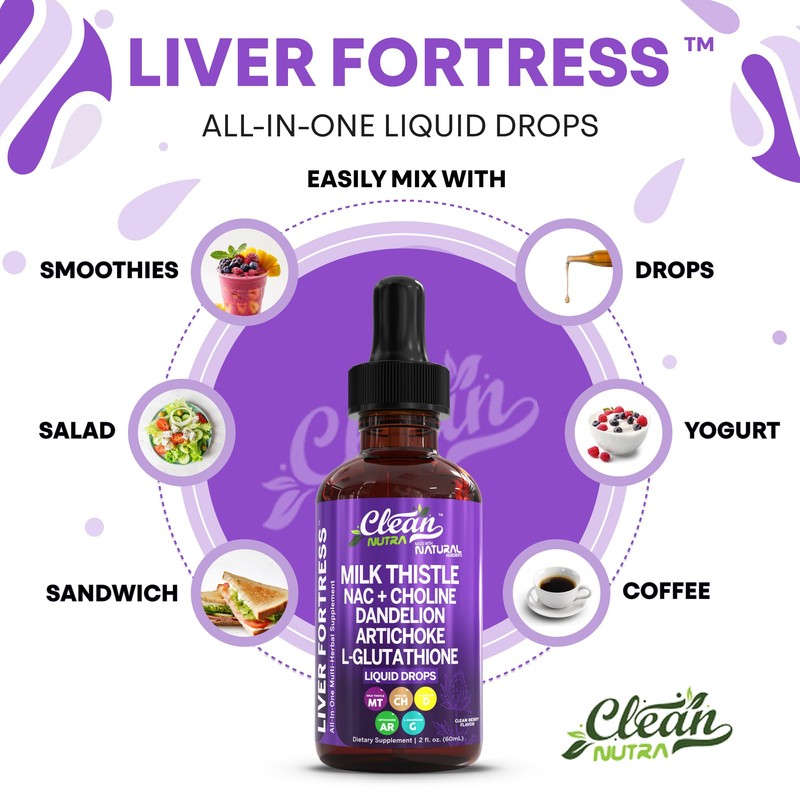 Clean Nutraceuticals Milk Thistle NAC Liver Cleanse Detox & Repair Supplement Liver Support Liquid Drops with Dandelion Extract, Artichoke, Chanca Piedra, Choline, L-Glutathione, Burdock, Schisandra