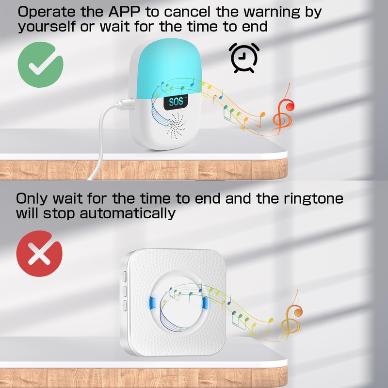 - 【Multifunctional App Control】: This smart wifi tuya caregiver pager is simple to use, requiring only connection to a power supply using the provided USB cable, without any batteries and concerns about battery life. You can achieve various functions on the Tuya app: Disarm the alarm; Replace the ringtone; Set the alarm duration; Set the alarm volume; Delete or add alarm buttons.You can also share the elderly life alert system with your family via social media/links/SMS through the Share function.