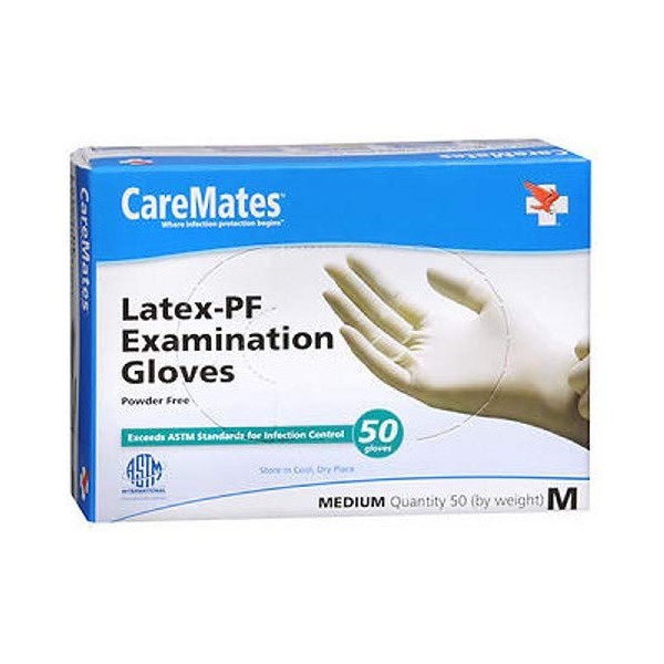 CareMates Latex-Pf Examination Gloves, Medium 50 each (Pack of 2)