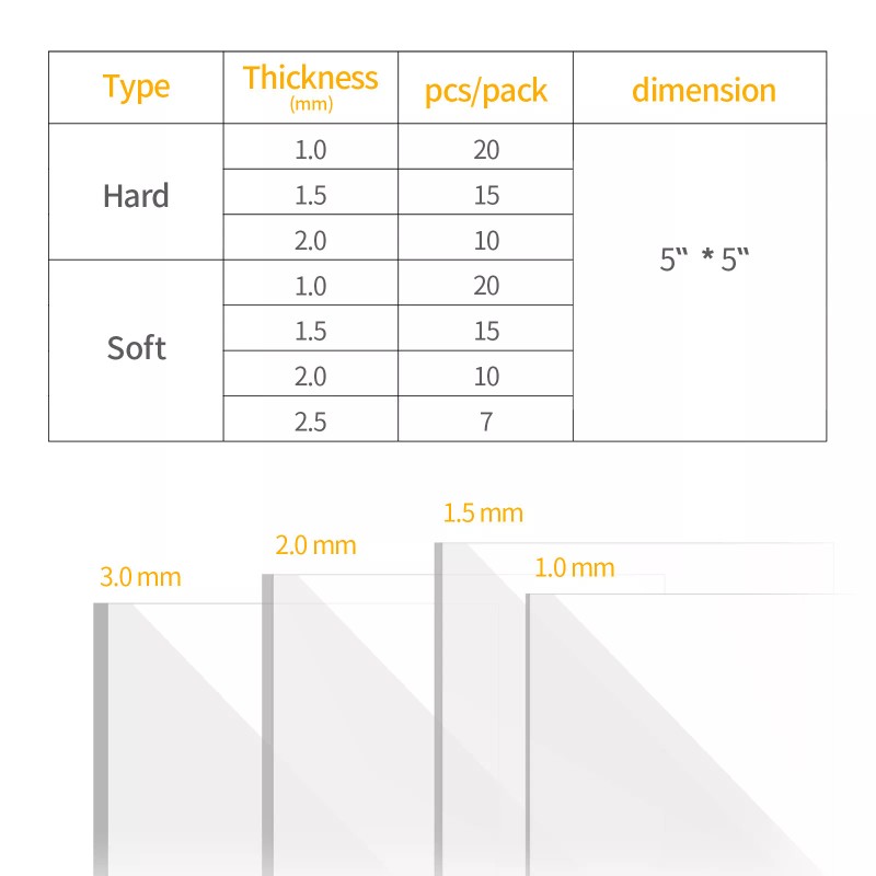 CAREPACY Dental Splint Orthodontic Retainer Vacuum Thermoforming Sheet Soft/Hard 1-3mm - Hard 2.0mm (10Pcs/Pack)