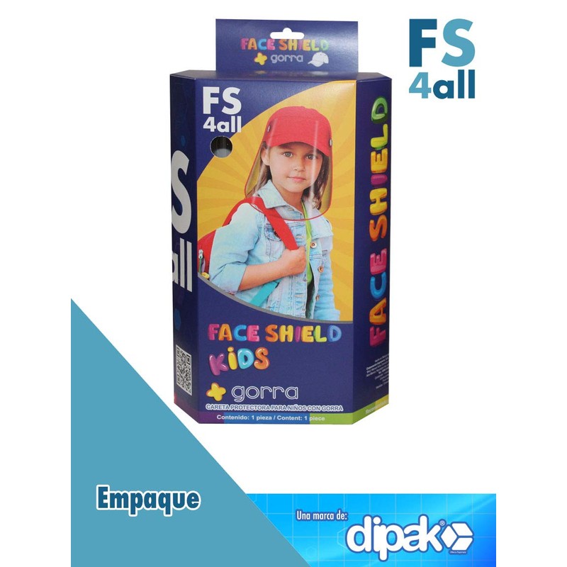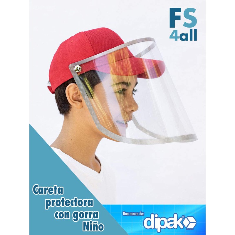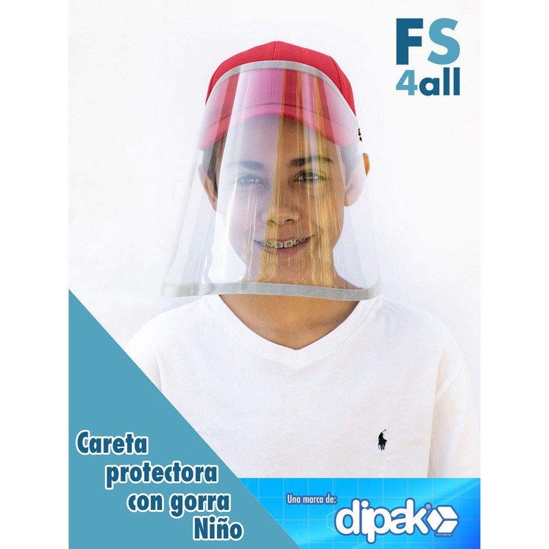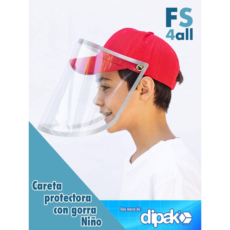 Careta Protección Faceshields4all Amplia Con Gorra de Color Rojo para Niño