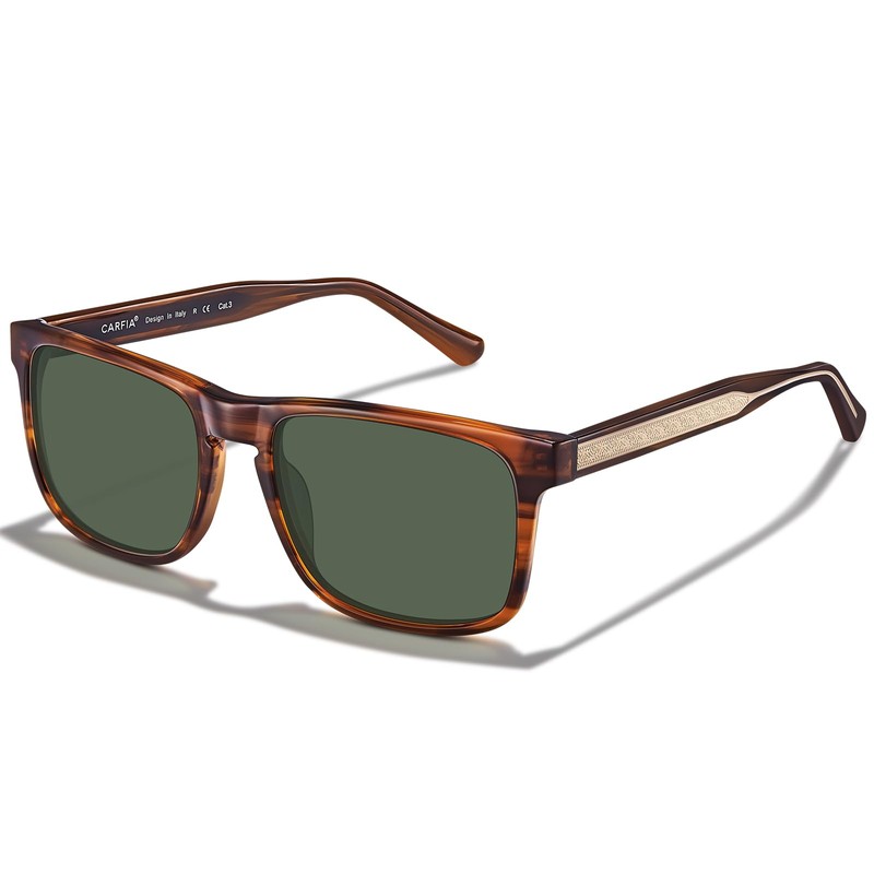 CARFIA Acetate Curved Green Polarized Sunglasses for Men UV Protection, Retro Cool Eyewears with Embossed Pattern Wire Core