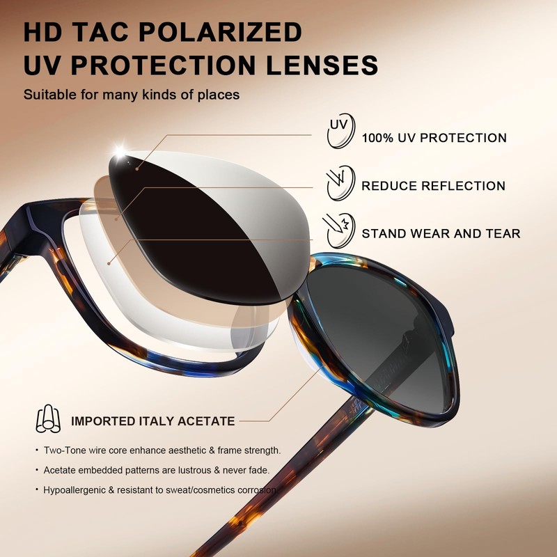 - Design for women - The rectangular frame is gently curved, comfortable to wear and ultra-light, which exudes femininity and sophistication. The retro modern style makes these sunglasses a versatile accessory for outdoor activities, leisure and recreational occasions.