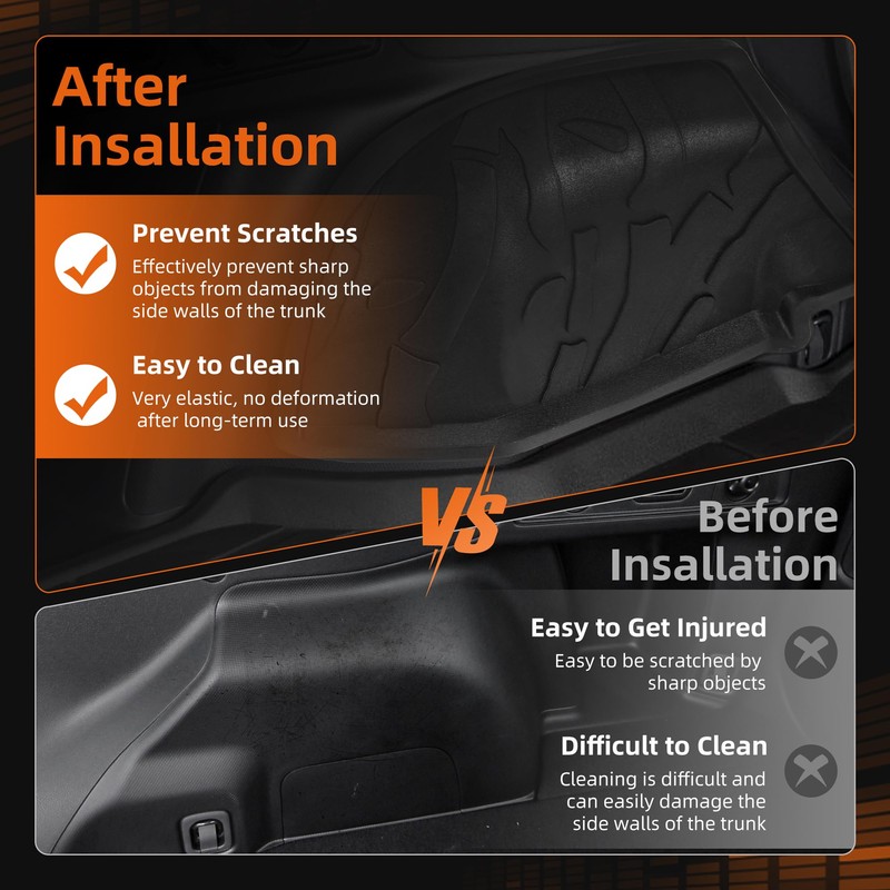 - Scratch & Damage Prevention – Shields your vehicle’s sidewalls from scratches, dents, and stains caused by luggage, pets, or heavy gear